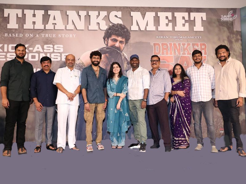 ధర్మ, ఐశ్వర్య శర్మ హీరో హీరోయిన్లుగా నటించిన సినిమా “డ్రింకర్ సాయి”. బ్రాండ్ ఆఫ్ బ్యాడ్ బాయ్స్ అనేది ఈ చిత్ర ట్యాగ్ లైన్. ఈ చిత్రాన్ని ఎవరెస్ట్ సినిమాస్, స్మార్ట్ స్క్రీన్ ఎంటర్ టైన్ మెంట్స్ బ్యానర్స్ పై బసవరాజు శ్రీనివాస్, ఇస్మాయిల్ షేక్, బసవరాజు లహరిధర్ నిర్మించారు. కొన్ని వాస్తవ ఘటనల ఆధారంగా దర్శకుడు కిరణ్ తిరుమలశెట్టి ఈ చిత్రాన్ని రూపొందించారు. ఈ నెల 27న గ్రాండ్ థియేట్రికల్ రిలీజ్ కు వచ్చిన “డ్రింకర్ సాయి” సినిమా యూత్ తో పాటు ఫ్యామిలీ ఆడియెన్స్ ఆదరణతో విడుదలైన అన్ని చోట్ల విజయవంతంగా ప్రదర్శితమవుతోంది. ఈరోజు “డ్రింకర్ సాయి” సినిమా సక్సెస్ మీట్ ను హైదరాబాద్ లో ఘనంగా నిర్వహించారు. ఈ కార్యక్రమంలో