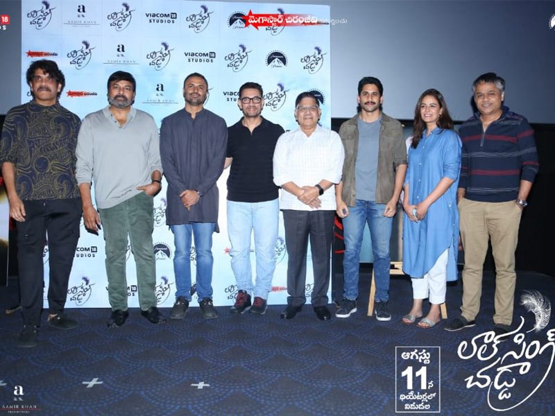 మెగాస్టార్ చిరంజీవి సమర్పణ (తెలుగు) లో వైయకామ్ స్టూడియోస్, పారామౌంట్ పిక్చర్స్, ఆమిర్ ఖాన్ ప్రొడక్షన్స్ పతకంపై మిస్టర్ పర్ఫెక్షనిస్ట్ అమీర్ ఖాన్, కరీనా కపూర్, అక్కినేని నాగ చైతన్య నటీ నటులుగా అద్వైత్ చందన్ దర్శకత్వంలో ఆమిర్ ఖాన్, కిరణ్ రావు, జ్యోతి దేశ్ పాండే, అజిత్ అంధారే లు సంయుక్తంగా నిర్మిస్తున్న చిత్రం ‘లాల్ సింగ్ చెడ్డా’. హాలీవుడ్ లో సూపర్ హిట్ అయినటువంటి ఫారెస్ట్ గంప్ సినిమా ఆధారంగా తెరకెక్కించిన ఈ సినిమా కొరకు ప్రేక్షకులు ఎంతో క్యూరియాసిటీగా ఎదురు చూస్తున్నారు. ఇందులో టాలీవుడ్ యువ హీరో నాగ చైతన్య బాలరాజుగా కీలక పాత్రలో అమీర్ ఖాన్ తో కలిసి సైనికుడిగా కనిపిస్తున్నారు. ఇప్పటికే బాలీవుడ్ లో విడుదలైన ట్రైలర్, పాటలకు అద్భుతమైన రెస్పాన్స్ వస్తోంది. తెలుగులో ఈ సినిమాను గీతా ఆర్ట్స్ సంస్థ డిస్ట్రిబ్యూషన్ చేస్తుండడం విశేషం. అన్ని కార్యక్రమాలు పూర్తి చేసుకున్న ఈ సినిమాను తెలుగు, తమిళ, హిందీ భాషల్లో ఆగస్టు 11న ప్రపంచ వ్యాప్తంగా అత్యంత భారీ స్థాయిలో విడుదల చేయనున్నారు. ఈ చిత్రం ప్రమోషన్ లో భాగంగా హైదరాబాద్ ఏ ఎమ్ బి స్క్రిన్స్ లో జరిగిన సెలబ్రెటి స్పెషల్ ప్రిమియర్ షో, అట్టహాసంగా జరిగింది. ఈ కార్యక్రమానికి మెగాస్టార్ చిరంజీవిగారు, మిస్టర్ పర్ ఫెక్షనిస్ట్ ఆమిర్ ఖాన్, కింగ్ అక్కినేని నాగార్జున, నాగచైతన్య, మెగానిర్మాత అల్లు అరవింద్, యువ హీరోలు సాయితేజ్, అల్లు శిరీష్, కార్తికేయ, దర్శకులు మారుతి, హరీశ్ శంకర్, నిర్మాతలు సురేశ్ బాబు తదితరులు హజరైయ్యారు.