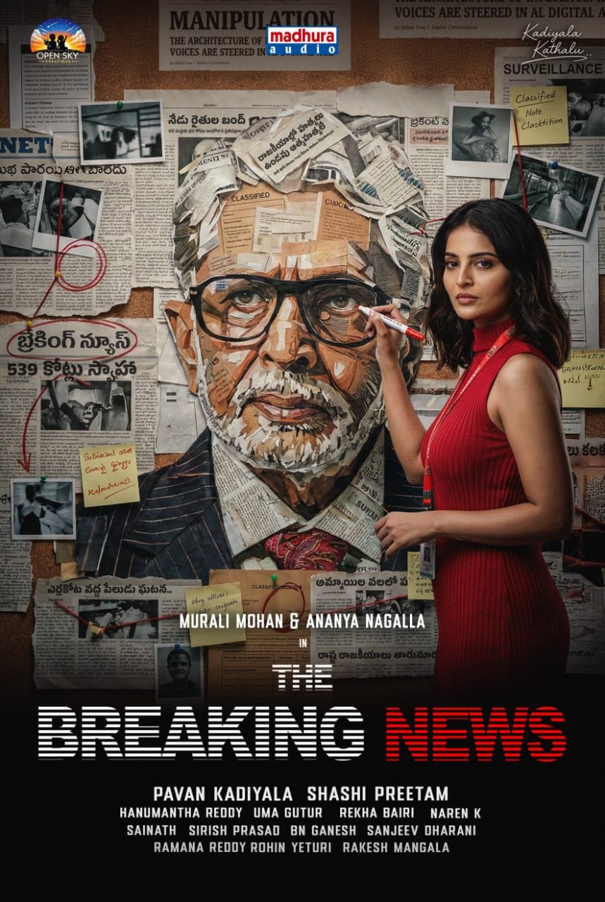 మీడియా నేపథ్యంతో రూపొందుతున్న థ్రిల్లర్ చిత్రం “ది బ్రేకింగ్ న్యూస్” తాజాగా ఫస్ట్ లుక్ మరియు టైటిల్ అనౌన్స్మెంట్తో ప్రేక్షకుల ముందుకు వచ్చింది. ప్రముఖ నటులు మురళీ మోహన్, అనన్య నాగళ్ల, వాసుదేవ్ ప్రధాన పాత్రల్లో నటిస్తున్న ఈ చిత్రానికి పవన్ కడియాల రచన మరియు దర్శకత్వం వహిస్తున్నారు. ఓపెన్ స్కై క్రియేషన్స్ బ్యానర్పై హనుమంత్ రెడ్డి, ఉమ గుటూర్ ఈ చిత్రాన్ని నిర్మిస్తున్నారు. ఈ సినిమా ఫస్ట్ లుక్ పోస్టర్ను శుక్రవారం ప్రముఖ నటుడు మెగాస్టార్ చిరంజీవి చేతుల మీదుగా విడుదల చేశారు.