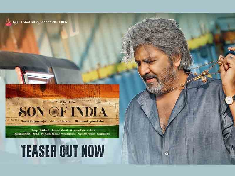 డా. మోహన్ బాబు కథానాయకుడిగా శ్రీ లక్ష్మీప్రసన్న పిక్చర్స్, 24 ఫ్రేమ్స్ ఫ్యాక్టరీ పతాకంపై విష్ణు మంచు నిర్మిస్తున్న చిత్రం ‘సన్ ఆఫ్ ఇండియా’, డైమండ్ రత్నబాబు దర్శకత్వంలో రూపొందుతున్న ఈ చిత్రం టీజర్ ని శుక్రవారం హీరో సూర్య సోషల్ మీడియా ద్వారా విడుదల చేశారు. “కలెక్షన్ కింగ్ మోహన్ బాబు సార్ అంటే నాకెంతో గౌరవం.. సన్ ఆఫ్ ఇండియా టీజర్ విడుదల చేసినందుకు ఆనందంగా ఉంది” అని సూర్య అన్నారు. డైలాగ్ కింగ్ నటించిన ఈ చిత్రంలోని ఆయన పాత్ర పరిచయానికి మెగాస్టార్ చిరంజీవి వాయిస్ ఓవర్ ఇవ్వడం విశేషం.