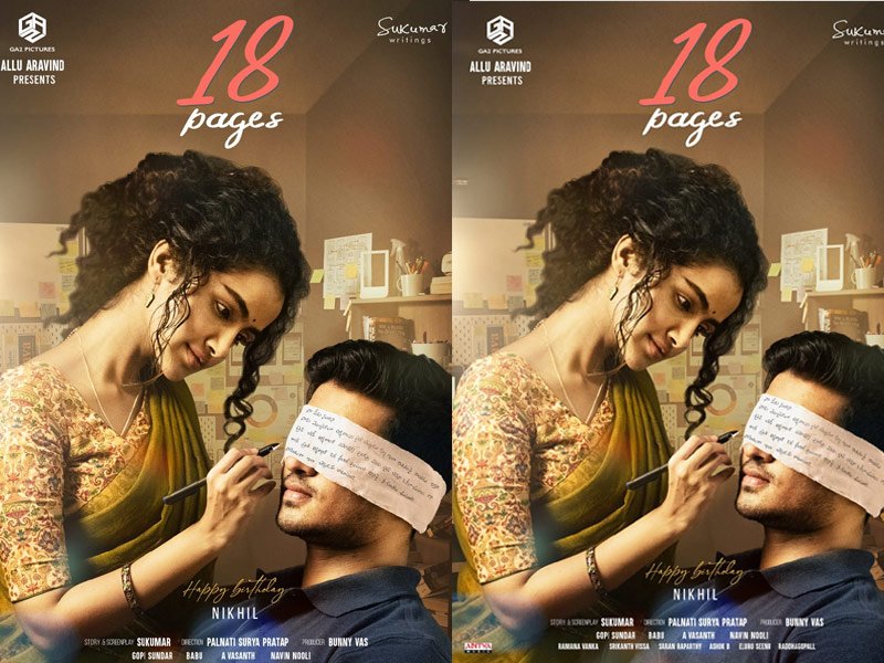 అర్జున్ సురవరం వంటి బ్లాక్ బస్టర్స్ హిట్ తరువాత యంగ్ డైనమిక్ హీరో నిఖిల్, మళయాలీ ముద్దుగుమ్మ అనుపమ జంటగా కుమారి 21 ఎఫ్ ఫేమ్ పల్నాటి సూర్య ప్రతాప్ దర్శకత్వం వహిస్తున్న చిత్రం 18 పేజీస్. మెగాప్రొడ్యూసర్ అల్లు అరవింద్ గారి సమర్పణలో స్టార్ డైరెక్టర్ సుకుమార్ స్టోరీ, స్క్రీన్ ప్లే అందిస్తూ, 100 పర్సెంట్, భలే భలే మగాడివోయ్, గీతగోవిందం, ప్రతిరోజూపండుగే వంటి సక్సెస్ ఫుల్ చిత్రాలతో సక్సస్ కి కేర్ ఆఫ్ అడ్రస్ గా మారిన యంగ్ నిర్మాత బన్నివాసు నిర్మాతగా జీఏ2పిక్చర్స్ మరియు ఉప్పెన వంటి సన్సెషేనల్ హిట్ అందుకుని విజయవంతంగా ముందుకు సాగుతున్న సుకుమార్ రైటింగ్స్ తో కలిసి ఈ చిత్రాన్ని నిర్మిస్తున్నారు. 18 పేజీస్ అనే టైటిల్ ఈ సినిమాకు ఫిక్స్ చేసినప్పటి నుంచి అన్ని వర్గాల ప్రేక్షకుల అనూహ్య స్పందన లభించింది, అలానే స్టార్ దర్శకుడు సుకుమార్ ఈ సినిమాకు స్టోరీ, స్క్రీన్ ప్లే అందిస్తుండటం, కుమారి 21 ఎఫ్ వంటి బ్లాక్ బస్టర్ హిట్ తరువాత పల్నాటి సూర్య ప్రతాప్ డైరెక్ట్ చేస్తున్న సినిమా కావడంతో, నిఖిల్ – అనుపమ కాంబినేషన్, జీఏ2 పిక్చర్స్ – సుకుమార్ రైటింగ్స్ సంయుక్త నిర్మాణం వెరసి 18 పేజీస్ ప్రాజెక్ట్ పై అందరి అసక్తి మరింత పెంచుతున్నాయి. ఈ నేపథ్యంలో జూన్ 1న నిఖిల్ పుట్టినరోజు సందర్భంగా 18 పేజీస్ ఫస్ట్ లుక్ ని విడుదల చేశారు. నిఖిల్ కళ్లకు గంతలు కట్టి, వాటి పై అనుపమ