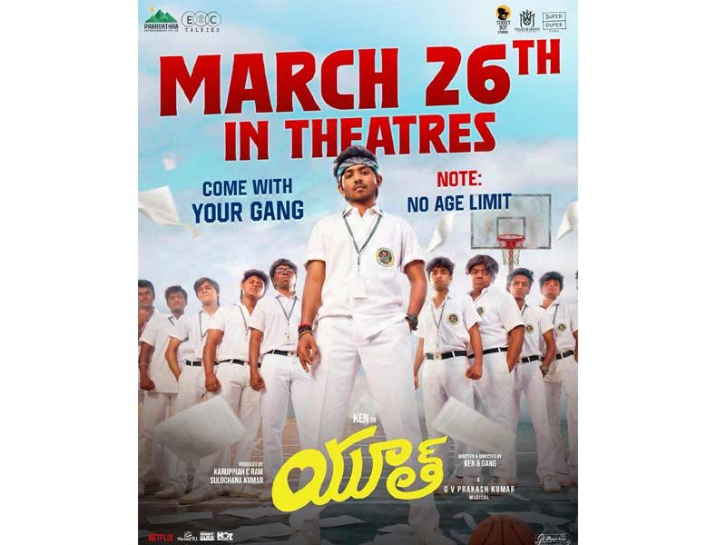 కెన్ కరునాస్, అనిష్మ అనిల్ కుమార్, దేవదర్శిని చేతన్, సూరజ్ వెంజరముడు, ప్రియాన్షి యాదవ్, మీనాక్షి దినేష్ ప్రధాన పాత్రల్లో నటిస్తున్న తమిళ మూవీ “యూత్”. ఈ చిత్రాన్ని ఇదే పేరుతో ఈ2సీ బ్యానర్ పై తెలుగు ప్రేక్షకుల ముందుకు తీసుకొస్తున్నారు హౌస్ ఫుల్ వినీత్, సందీప్. ఈ చిత్రానికి కెన్ కరునాస్ అండ్ గ్యాంగ్ దర్శకత్వం వహించారు. ఈ నెల 26న “యూత్” మూవీ తెలుగులో గ్రాండ్ థియేట్రికల్ రిలీజ్ కు రాబోతోంది. ‘కమ్ విత్ యువర్ గ్యాంగ్, నోట్ – నో ఏజ్ లిమిట్’ అనే స్లోగన్ తో ఈ సినిమా ప్రమోషనల్ క్యాంపెయిన్ చేస్తున్నారు.
