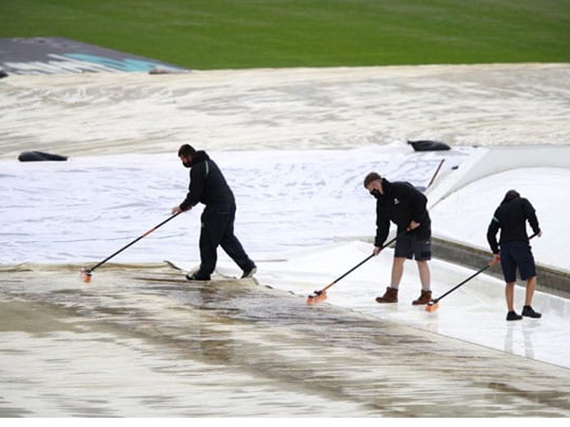 తొలుత తొలి సెషన్ వరకు వేచి చూడగా, భోజన విరామం అనంతరం సైతం తేలికపాటి జల్లులు కురిశాయి. ఈ క్రమంలోనే వరుణుడు కాస్త కనికరించినా.. మైదానమంతా వర్షం నీరు ఉండటంతో అంపైర్లు ఆటను నిలిపివేశారు. రేపటి నుంచి మ్యాచ్ సజావుగా సాగితే తొలిరోజు కోల్పోయిన సమయాన్ని రిజర్వ్డే రోజు నిర్వహించే అవకాశం ఉంది.